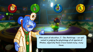 Doc Patchingo (or Patch for short) is the Village's resident doctor. If a piñata gets sick, you can call Patch to get them fixed up, before Dastardos arrives to collect.