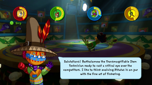Bartholomew (or Bart for short) is the man who runs Bart's Exchange. He is the local tinker (or Transmogrifiable Item Technician as he prefers), and can be hired to transform one item into something new.