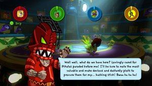 Furious, Jardiniero would be the first to call Lester “Pester”. Lester would end up adopting the name, now being known across Piñata Island as Professor Pester. He and his Ruffian lackeys would take to terrorizing gardens, smashing piñatas and generally just causing trouble.